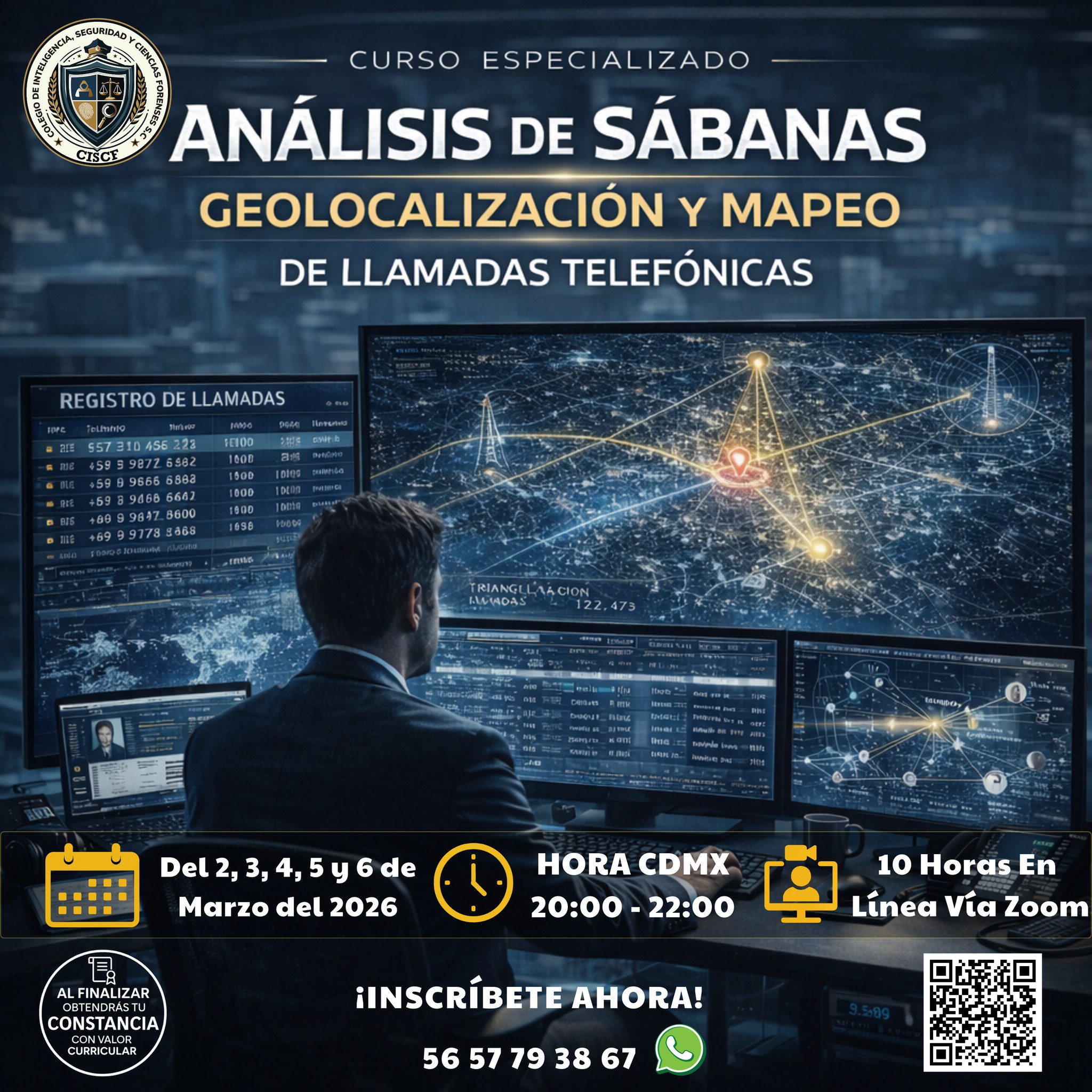 El análisis de sábanas telefónicas, la geolocalización y el mapeo de llamadas constituyen herramientas clave en la investigación criminal, la inteligencia y los procesos judiciales. Este curso especializado de 10 horas (5 sesiones de 2 horas) proporciona los conocimientos técnicos y metodológicos para la correcta interpretación de registros telefónicos, el análisis de patrones de comunicación y la representación geoespacial de datos, bajo criterios legales y técnicos.