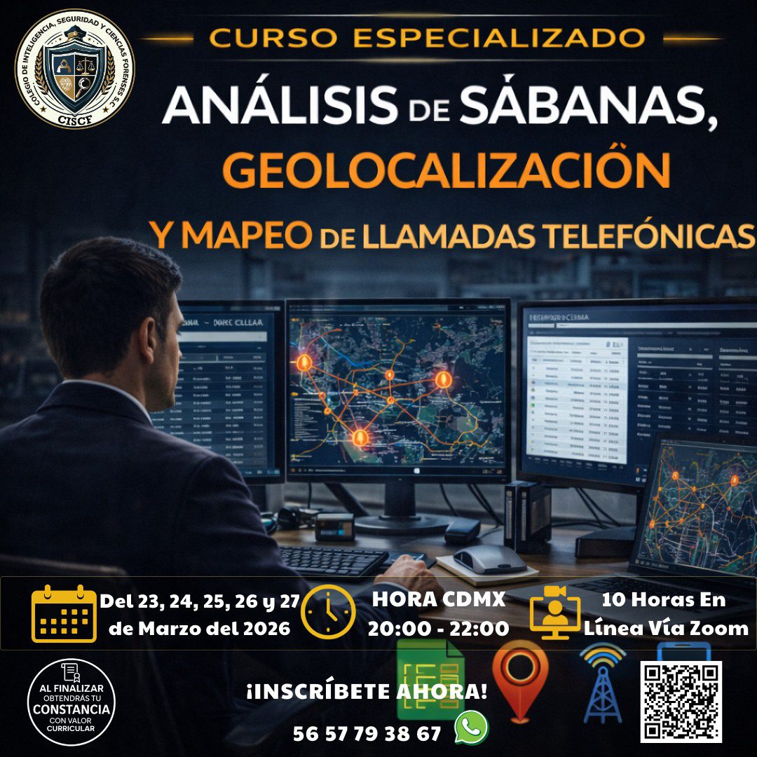 El análisis de sábanas telefónicas, la geolocalización y el mapeo de llamadas constituyen herramientas clave en la investigación criminal, la inteligencia y los procesos judiciales. Este curso especializado de 10 horas (5 sesiones de 2 horas) proporciona los conocimientos técnicos y metodológicos para la correcta interpretación de registros telefónicos, el análisis de patrones de comunicación y la representación geoespacial de datos, bajo criterios legales y técnicos.