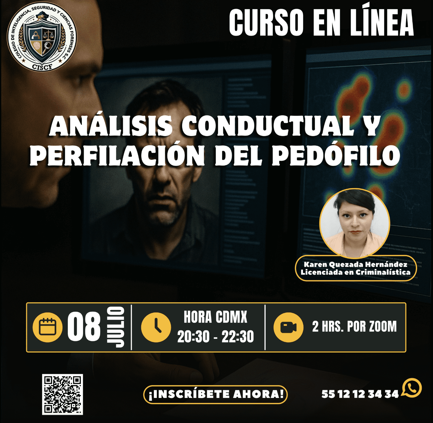 Este curso ofrece un análisis profundo sobre el comportamiento del agresor sexual infantil. Se abordarán patrones de conducta, motivaciones, perfiles psicológicos y herramientas útiles para su identificación en procesos de investigación criminal y pericial.