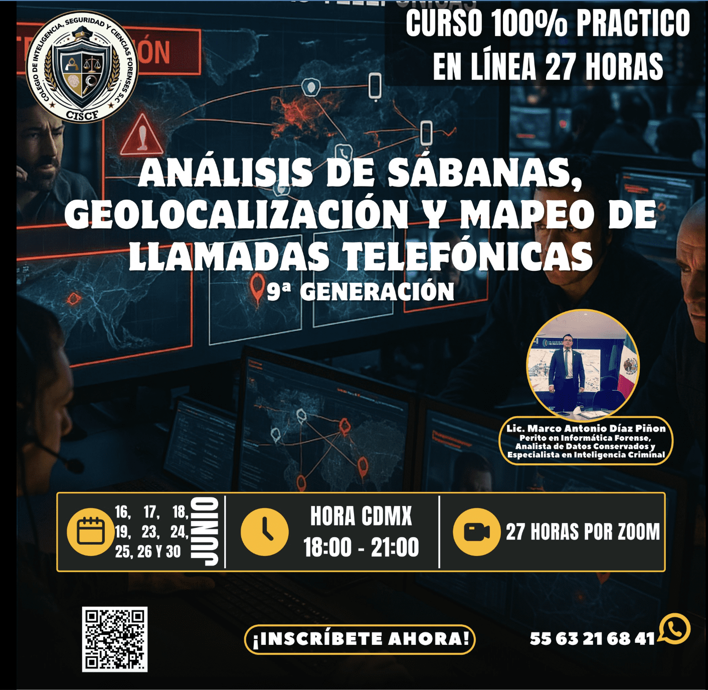 Clase 7: Análisis de Sábanas, Geolocalización y Mapeo de Llamadas Telefónicas- (27 Horas.)-9ª Generación