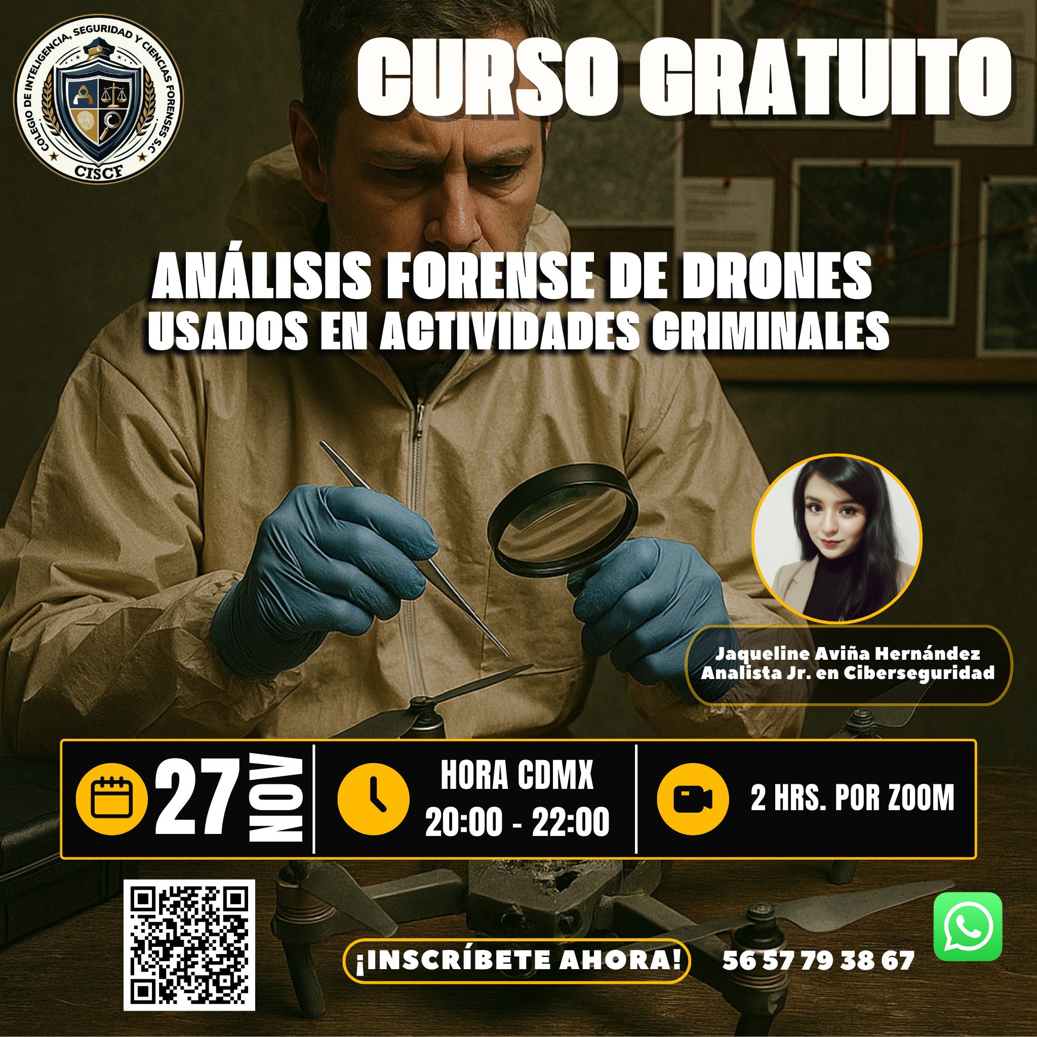 El uso de drones en actividades criminales se ha vuelto cada vez más sofisticado: transporte ilícito, vigilancia clandestina, ataques dirigidos y alteraciones contra infraestructuras. La imagen muestra la esencia del análisis forense: revisión minuciosa de componentes, recuperación de datos y reconstrucción de los hechos mediante técnicas científico-digitales.