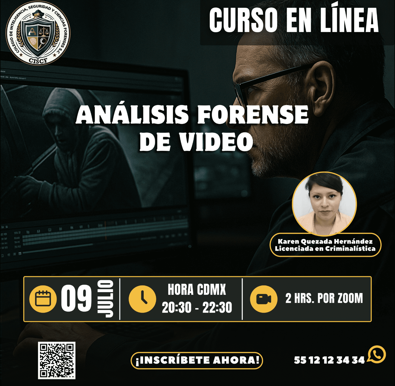El análisis forense de video es clave en la investigación criminal y la validación de evidencias audiovisuales. En este curso aprenderás los principios básicos del procesamiento de video, autenticación de grabaciones, extracción de fotogramas y elaboración de dictámenes periciales válidos ante autoridad judicial.