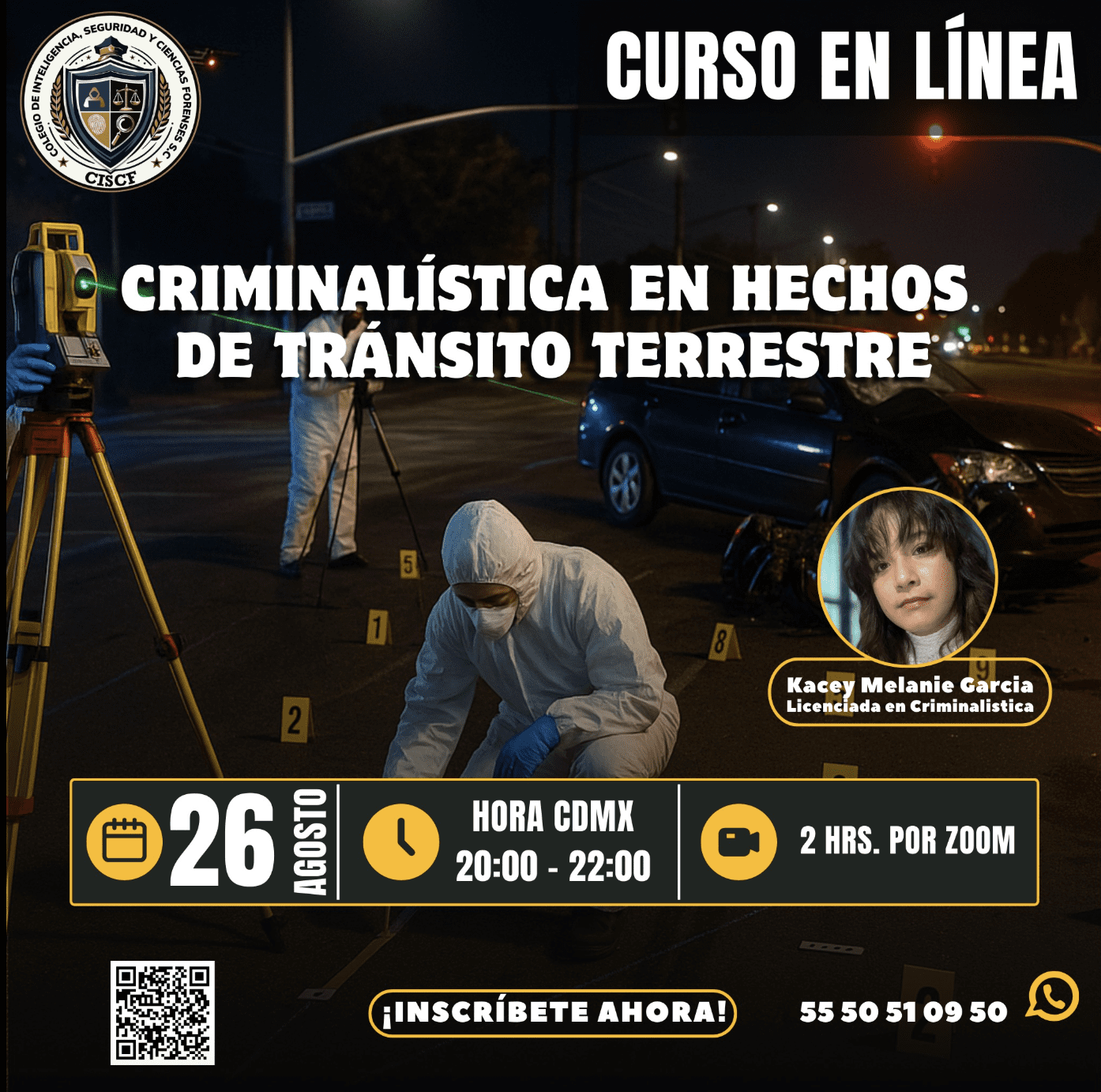 Los hechos de tránsito terrestre constituyen una de las áreas de mayor relevancia en la investigación criminalística, ya que implican la determinación de responsabilidades, causas y mecánicas de los accidentes viales. Este curso ofrece conocimientos teóricos y prácticos sobre la recolección, análisis e interpretación de indicios en siniestros de tránsito, aplicados al ámbito pericial y judicial.