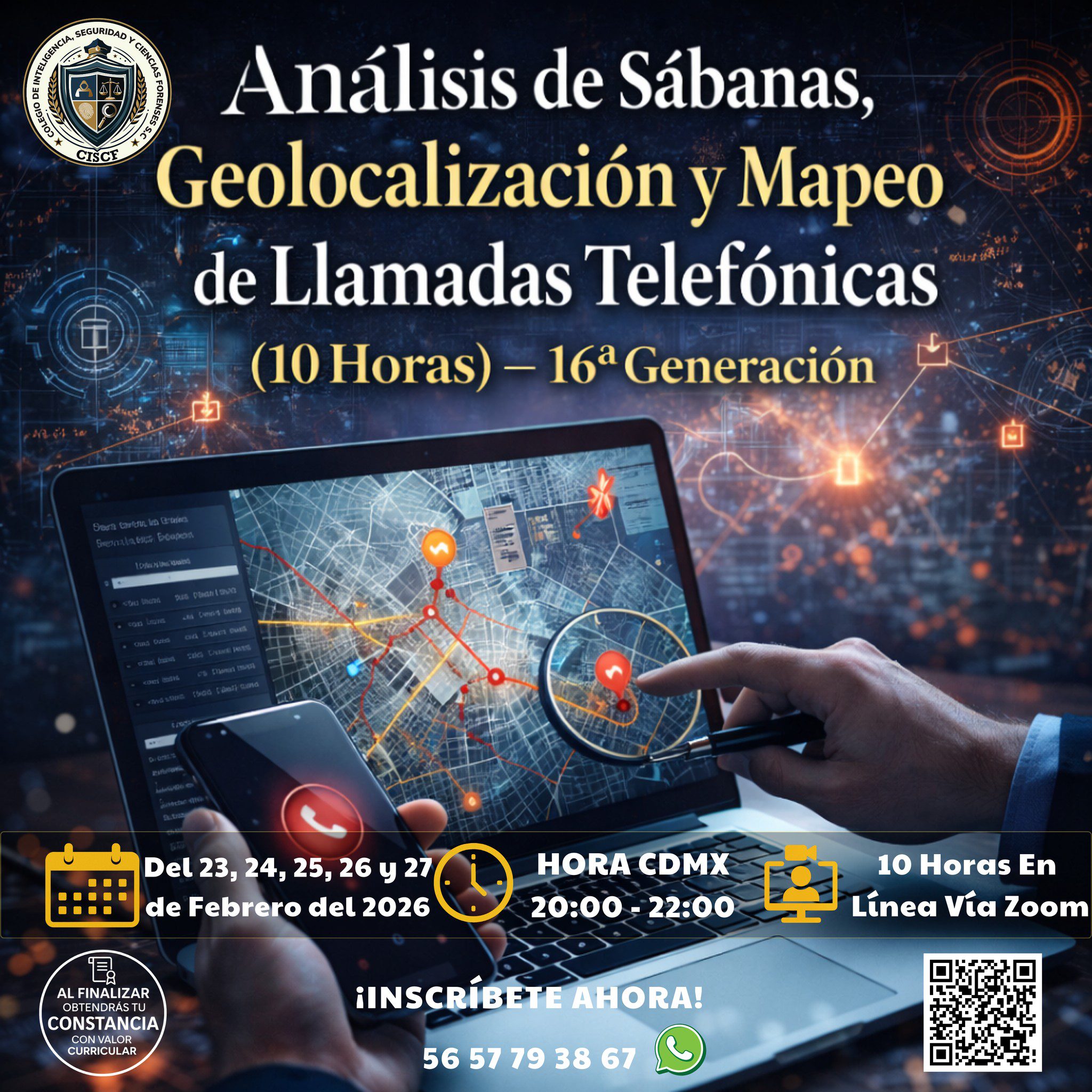 El análisis de sábanas telefónicas, la geolocalización y el mapeo de llamadas constituyen herramientas clave en la investigación criminal, la inteligencia y los procesos judiciales. Este curso especializado de 10 horas (5 sesiones de 2 horas) proporciona los conocimientos técnicos y metodológicos para la correcta interpretación de registros telefónicos, el análisis de patrones de comunicación y la representación geoespacial de datos, bajo criterios legales y técnicos.
