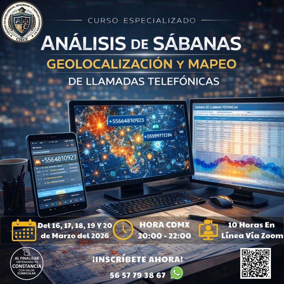 El análisis de sábanas telefónicas, la geolocalización y el mapeo de llamadas constituyen herramientas clave en la investigación criminal, la inteligencia y los procesos judiciales. Este curso especializado de 10 horas (5 sesiones de 2 horas) proporciona los conocimientos técnicos y metodológicos para la correcta interpretación de registros telefónicos, el análisis de patrones de comunicación y la representación geoespacial de datos, bajo criterios legales y técnicos.