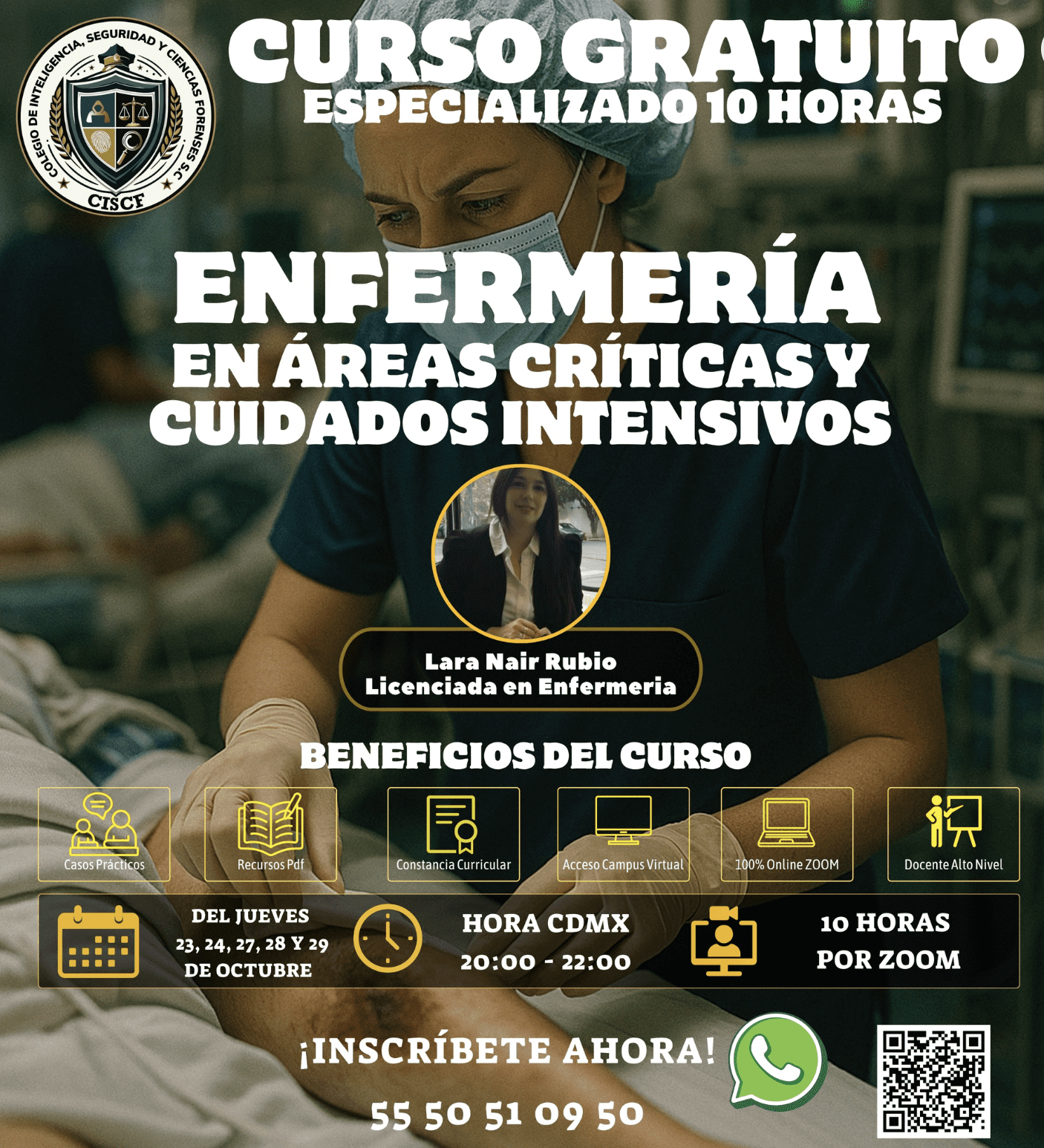 Este curso especializado de 10 horas (5 sesiones de 2 horas) está diseñado para brindar a los profesionales de la salud y áreas afines las bases teóricas y prácticas de la Enfermería Forense, comprendiendo su papel en la investigación criminal, la atención a víctimas y la preservación de evidencias médicas-legales.