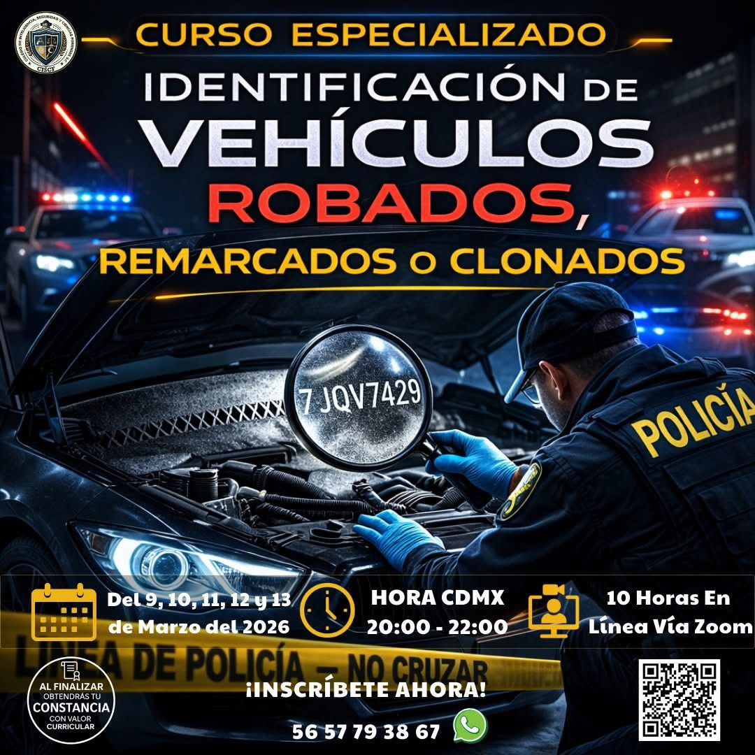 El incremento de vehículos clonados o con números de serie remarcados representa un grave problema en la seguridad pública y la investigación criminal. Este curso intensivo de 10 horas (5 sesiones de 2 horas) te brindará conocimientos técnicos para identificar alteraciones en números de serie, reconocer señales de manipulación y aplicar protocolos de verificación confiables.