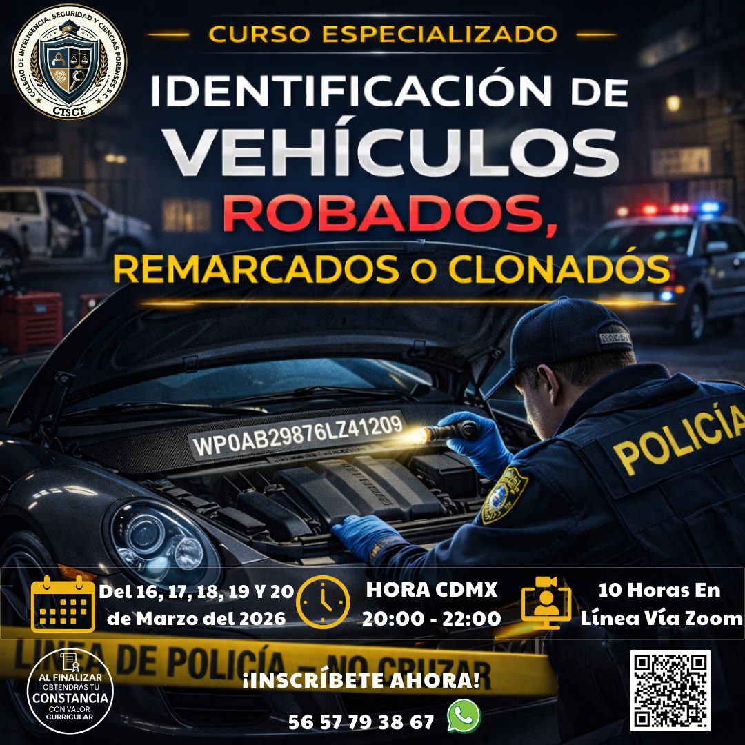 El incremento de vehículos clonados o con números de serie remarcados representa un grave problema en la seguridad pública y la investigación criminal. Este curso intensivo de 10 horas (5 sesiones de 2 horas) te brindará conocimientos técnicos para identificar alteraciones en números de serie, reconocer señales de manipulación y aplicar protocolos de verificación confiables.