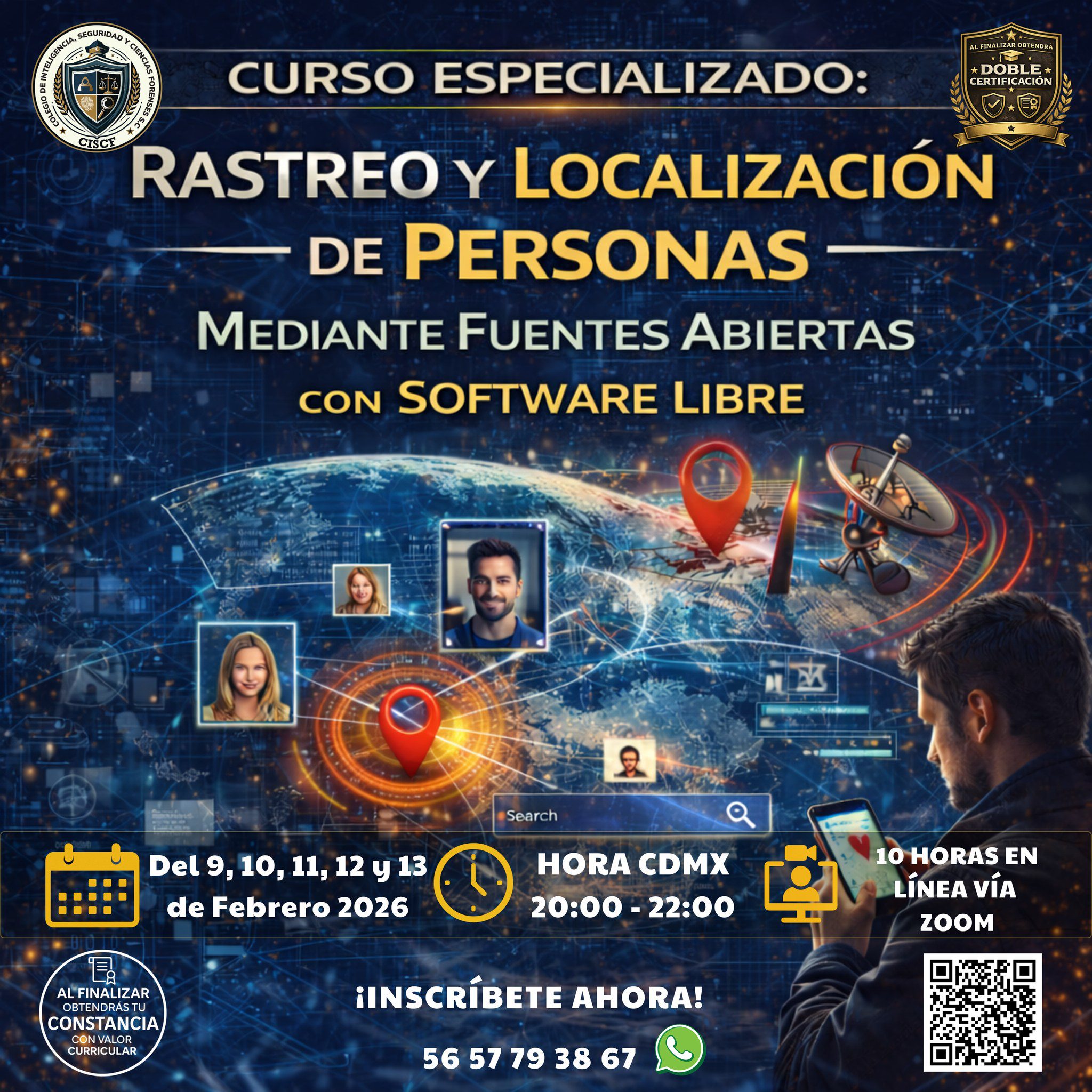 Este curso especializado tiene un enfoque teórico–demostrativo, orientado al rastreo y localización de personas mediante fuentes abiertas (OSINT) y el uso profesional de software libre. Durante las sesiones, el docente proyectará en tiempo real el uso de herramientas como Maltego CE, SpiderFoot, theHarvester y Shodan, permitiendo que las y los participantes observen paso a paso la aplicación práctica de técnicas de búsqueda, correlación y análisis de información pública, así como la integración de datos en casos de investigación digital e inteligencia.