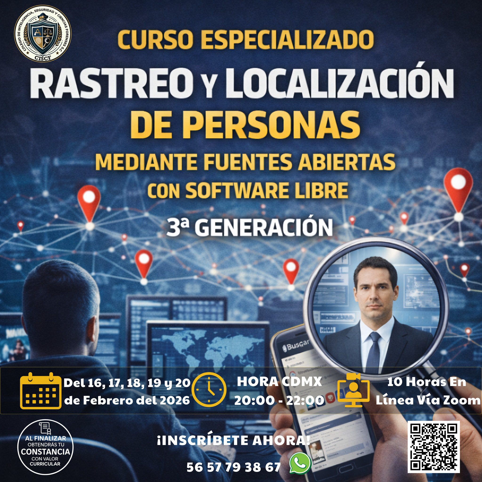 Este curso especializado tiene un enfoque teórico–demostrativo, orientado al rastreo y localización de personas mediante fuentes abiertas (OSINT) y el uso profesional de software libre. Durante las sesiones, el docente proyectará en tiempo real el uso de herramientas como Maltego CE, SpiderFoot, theHarvester y Shodan, permitiendo que las y los participantes observen paso a paso la aplicación práctica de técnicas de búsqueda, correlación y análisis de información pública, así como la integración de datos en casos de investigación digital e inteligencia.