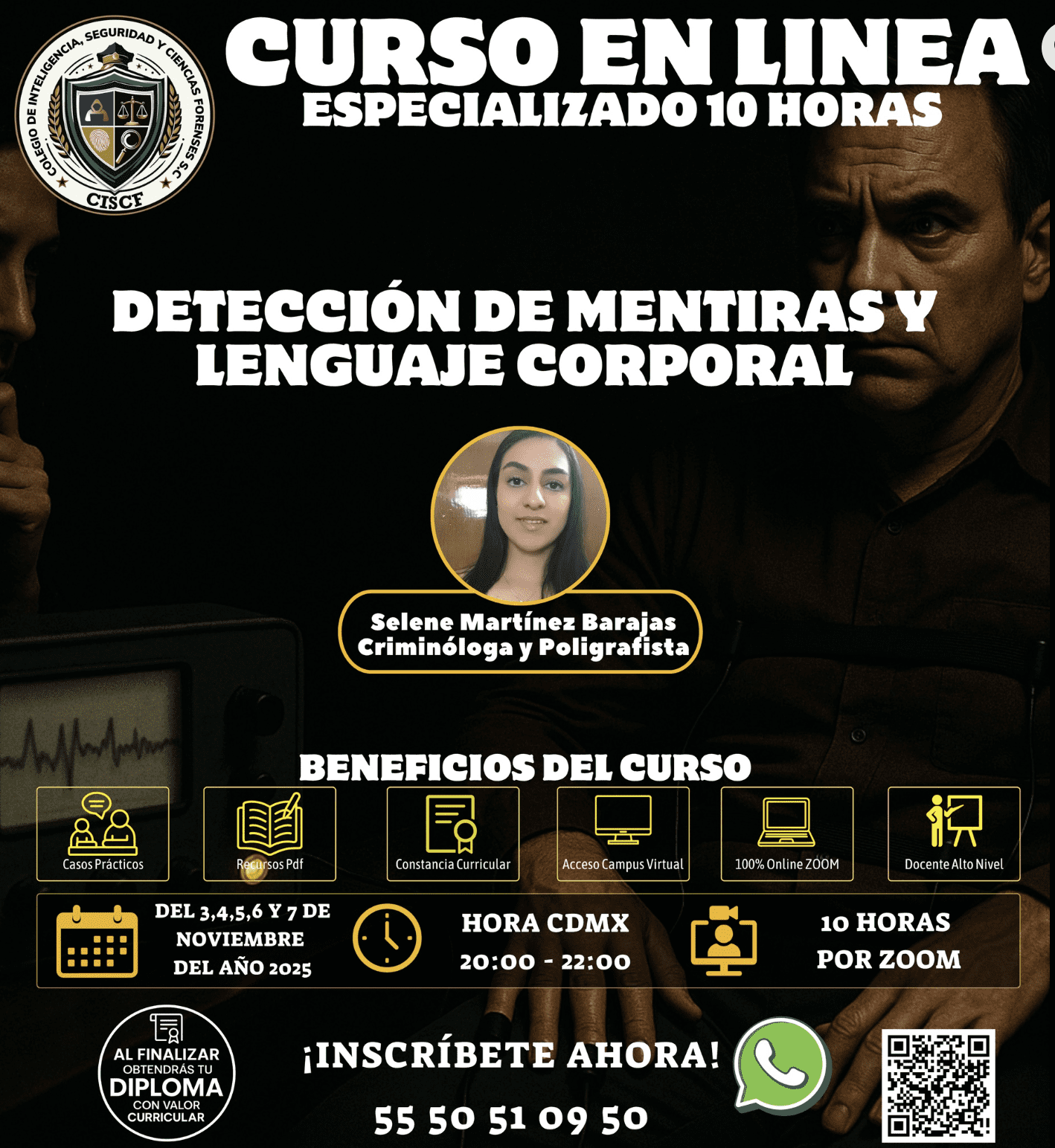El análisis del lenguaje corporal y la detección de mentiras son habilidades clave en criminología, seguridad y comunicación. Este curso intensivo de 10 horas (5 sesiones de 2 horas) te brindará técnicas prácticas para interpretar gestos, expresiones y microconductas, así como el uso de herramientas profesionales para identificar engaños.