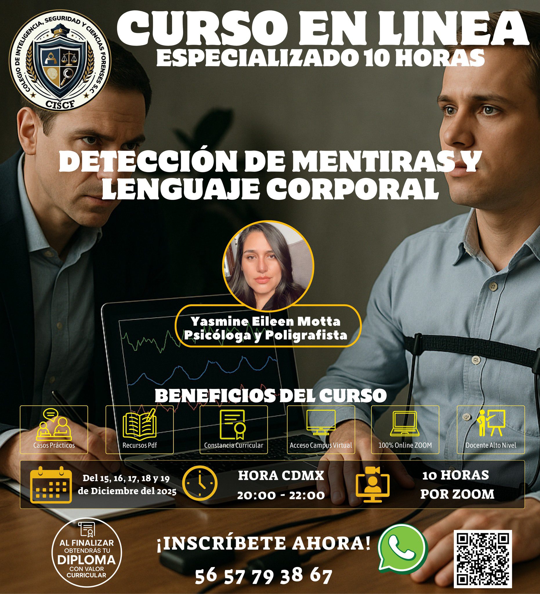 El análisis del lenguaje corporal y la detección de mentiras son habilidades clave en criminología, seguridad y comunicación. Este curso intensivo de 10 horas (5 sesiones de 2 horas) te brindará técnicas prácticas para interpretar gestos, expresiones y microconductas, así como el uso de herramientas profesionales para identificar engaños.