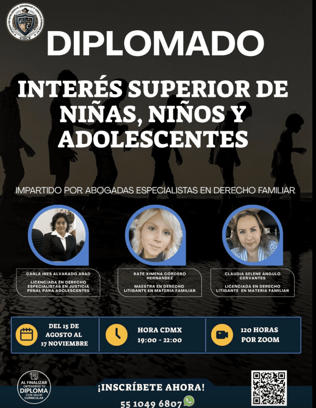 Un diplomado especializado en el marco normativo, principios rectores y procedimientos judiciales relacionados con el interés superior de la niñez, garantizando su protección en contextos legales, familiares y sociales.