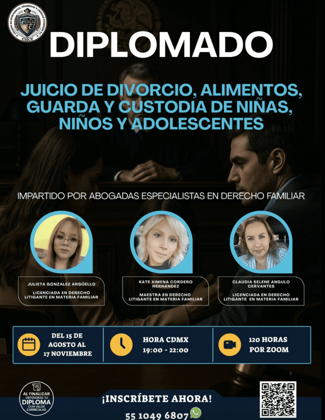 Diplomado en Juicio de Divorcio, Alimentos, Guarda y Custodia de Niñas, Niños y Adolescentes