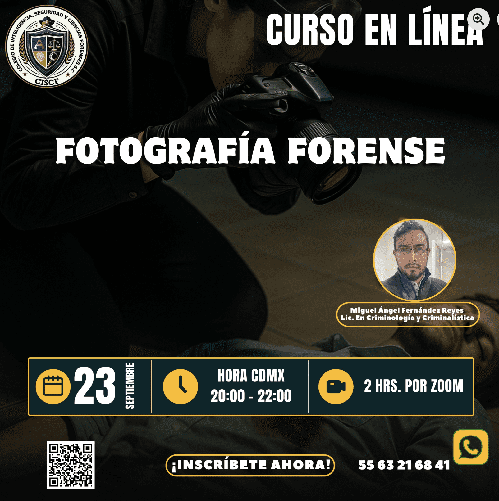 La fotografía forense es una de las principales técnicas de documentación en investigaciones criminales. Este curso breve te proporcionará herramientas para obtener, preservar y presentar imágenes como evidencia válida en juicios y peritajes.
