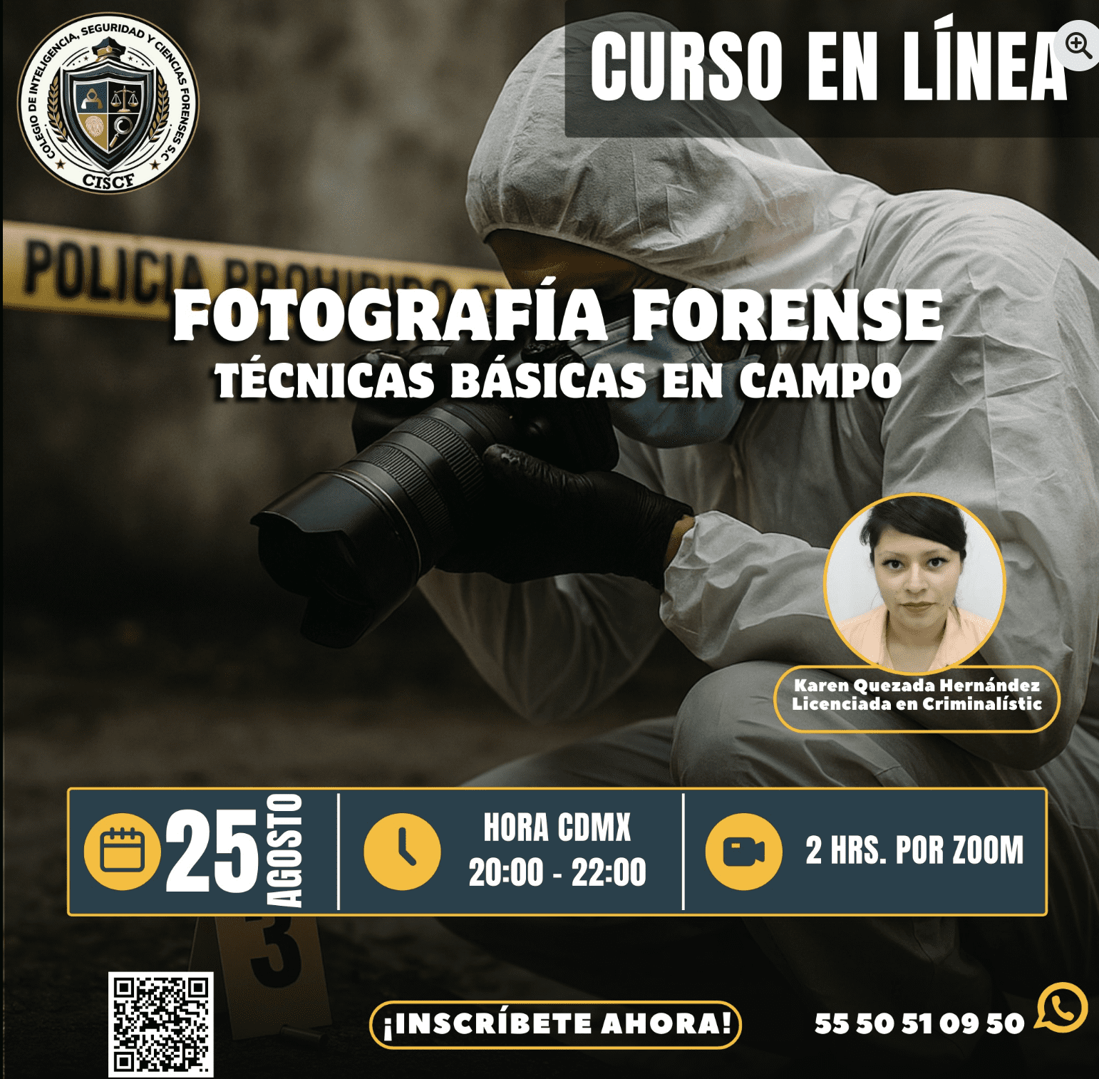 La fotografía forense es una herramienta esencial para el registro de la evidencia en la escena del crimen. Este curso práctico te proporcionará las bases para aplicar técnicas de documentación visual en campo, garantizando la preservación de indicios de valor probatorio.