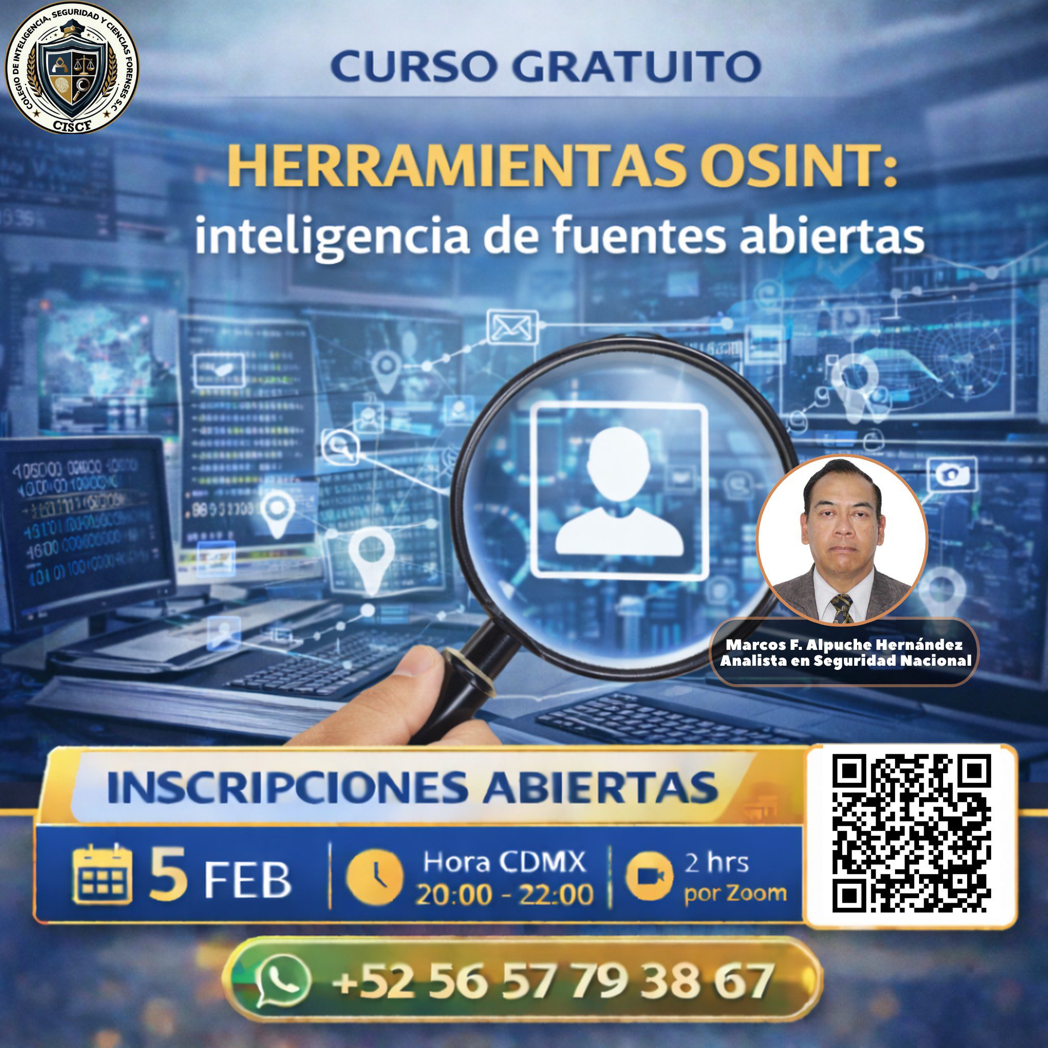 En este curso conocerás las principales herramientas OSINT y su aplicación práctica en investigaciones, análisis de personas, eventos y entornos digitales.