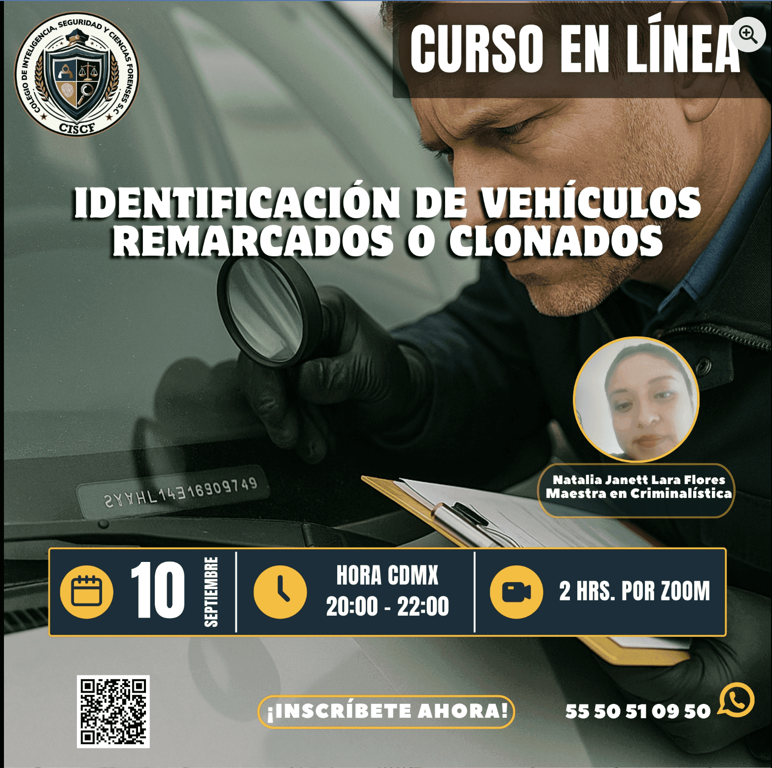La alteración y clonación de vehículos representa un reto constante para la seguridad pública y la investigación criminal. Este curso breve ofrece los conocimientos esenciales para identificar vehículos remarcados o clonados, mediante técnicas forenses, mecánicas y legales aplicables en campo.