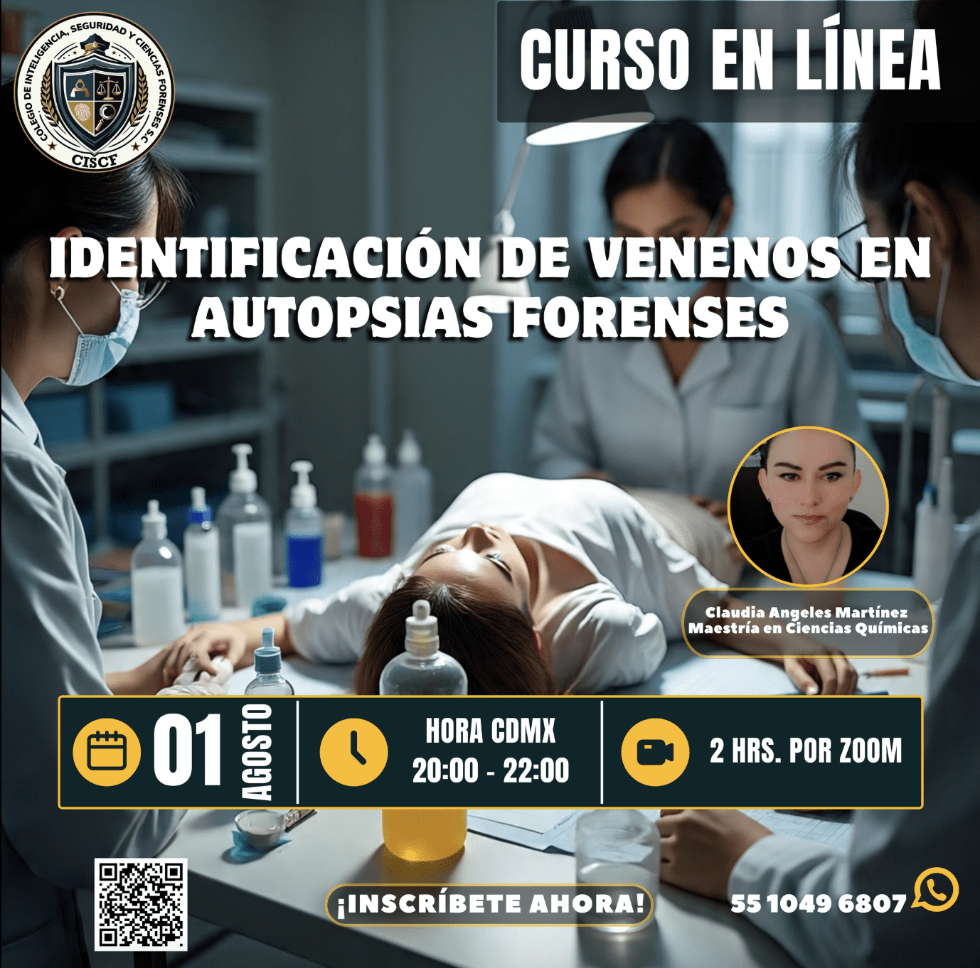 Este curso especializado te permitirá identificar los principales venenos y sustancias tóxicas detectables en contextos forenses durante autopsias, mediante técnicas químicas y análisis post mortem. Ideal para reforzar criterios técnicos en la investigación médico-legal.