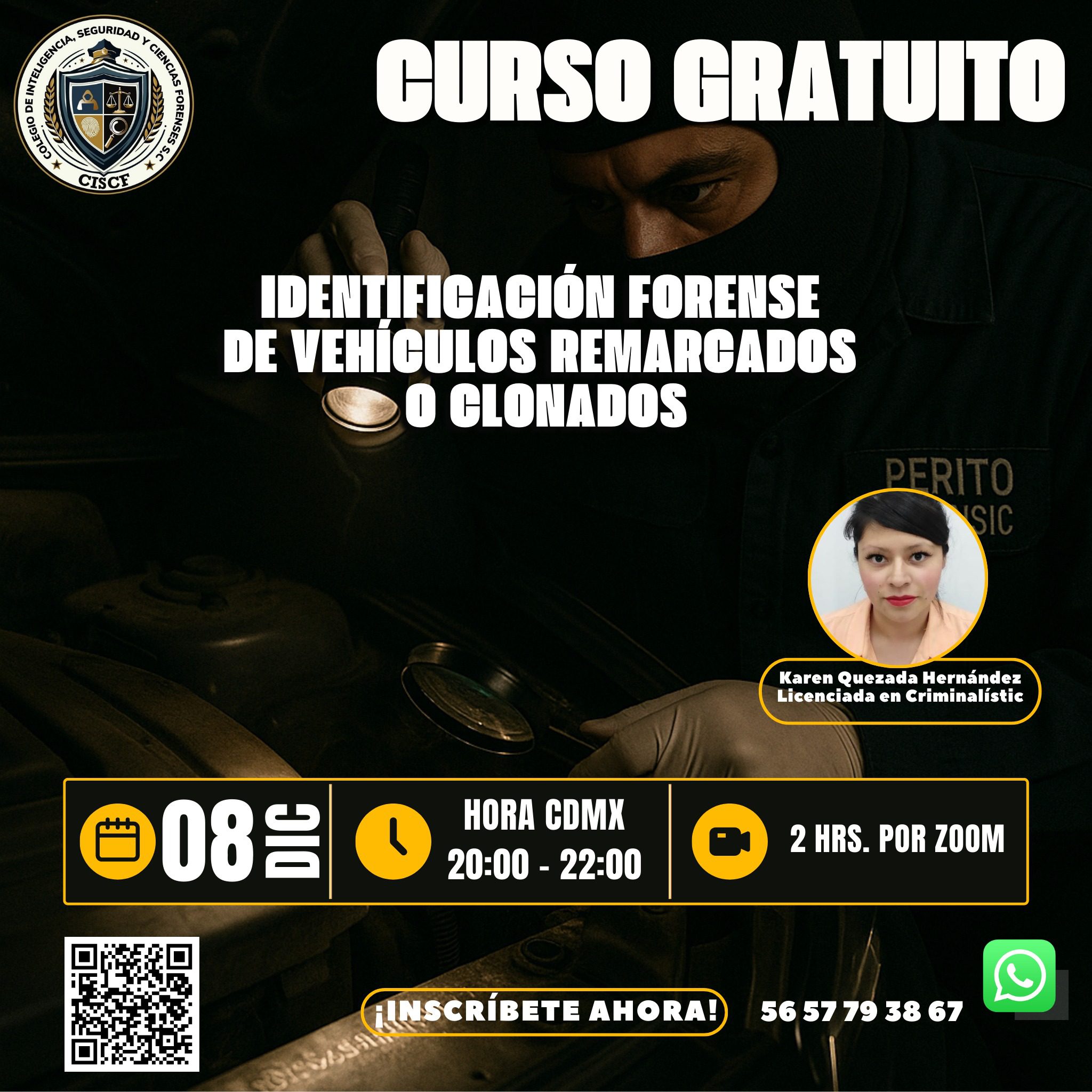 La 𝗜𝗱𝗲𝗻𝘁𝗶𝗳𝗶𝗰𝗮𝗰𝗶𝗼́𝗻 𝗙𝗼𝗿𝗲𝗻𝘀𝗲 𝗱𝗲 𝗩𝗲𝗵𝗶𝗰𝘂𝗹𝗼𝘀 𝗥𝗲𝗺𝗮𝗿𝗰𝗮𝗱𝗼𝘀 𝗼 𝗖𝗹𝗼𝗻𝗮𝗱𝗼𝘀 es una de las áreas más sensibles dentro de la criminalística aplicada. Permite detectar alteraciones en números de serie, componentes sustituidos, técnicas de remarcaje y patrones de clonación utilizados por redes delictivas.