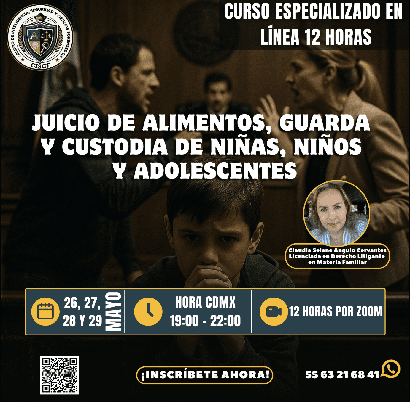 • Clase 1: Juicio de Alimentos, Guarda y Custodia de Niñas, Niños y Adolescentes (12 Horas).
