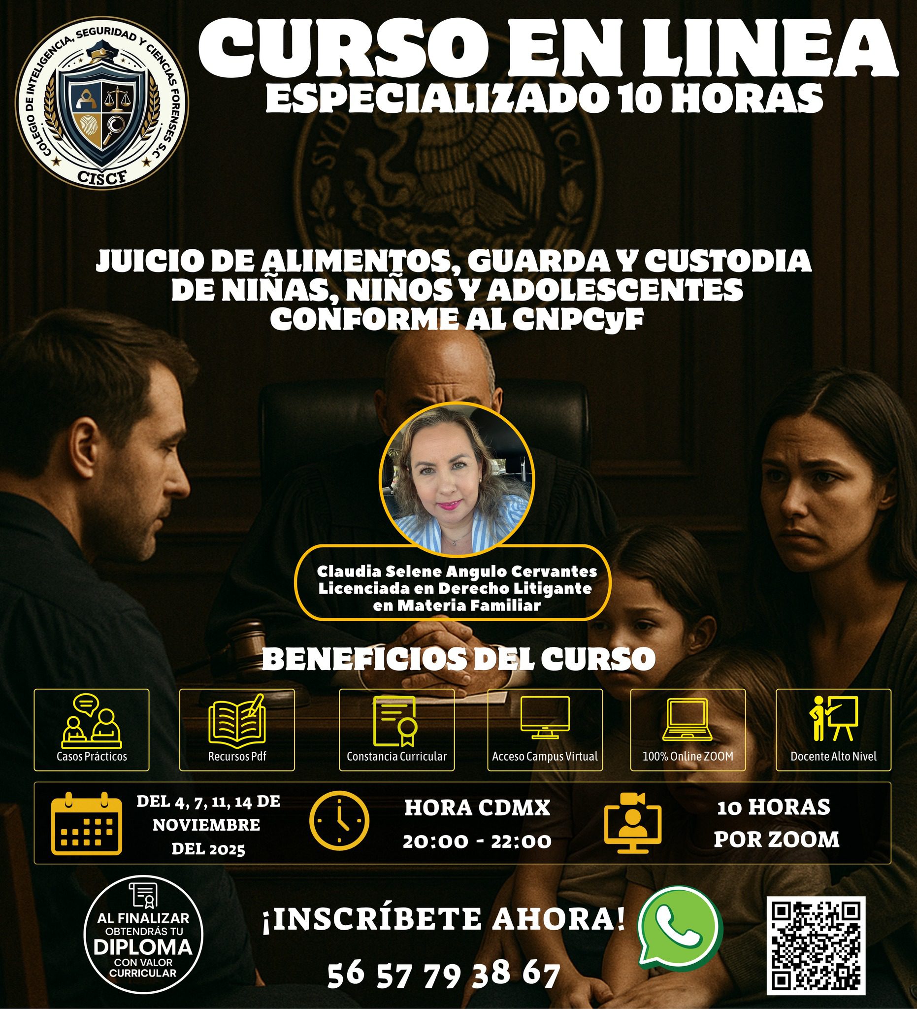 Este curso especializado de 10 horas ofrece una visión integral sobre los juicios de alimentos, guarda y custodia de menores, abordando aspectos jurídicos, procesales y de interés superior de la niñez.