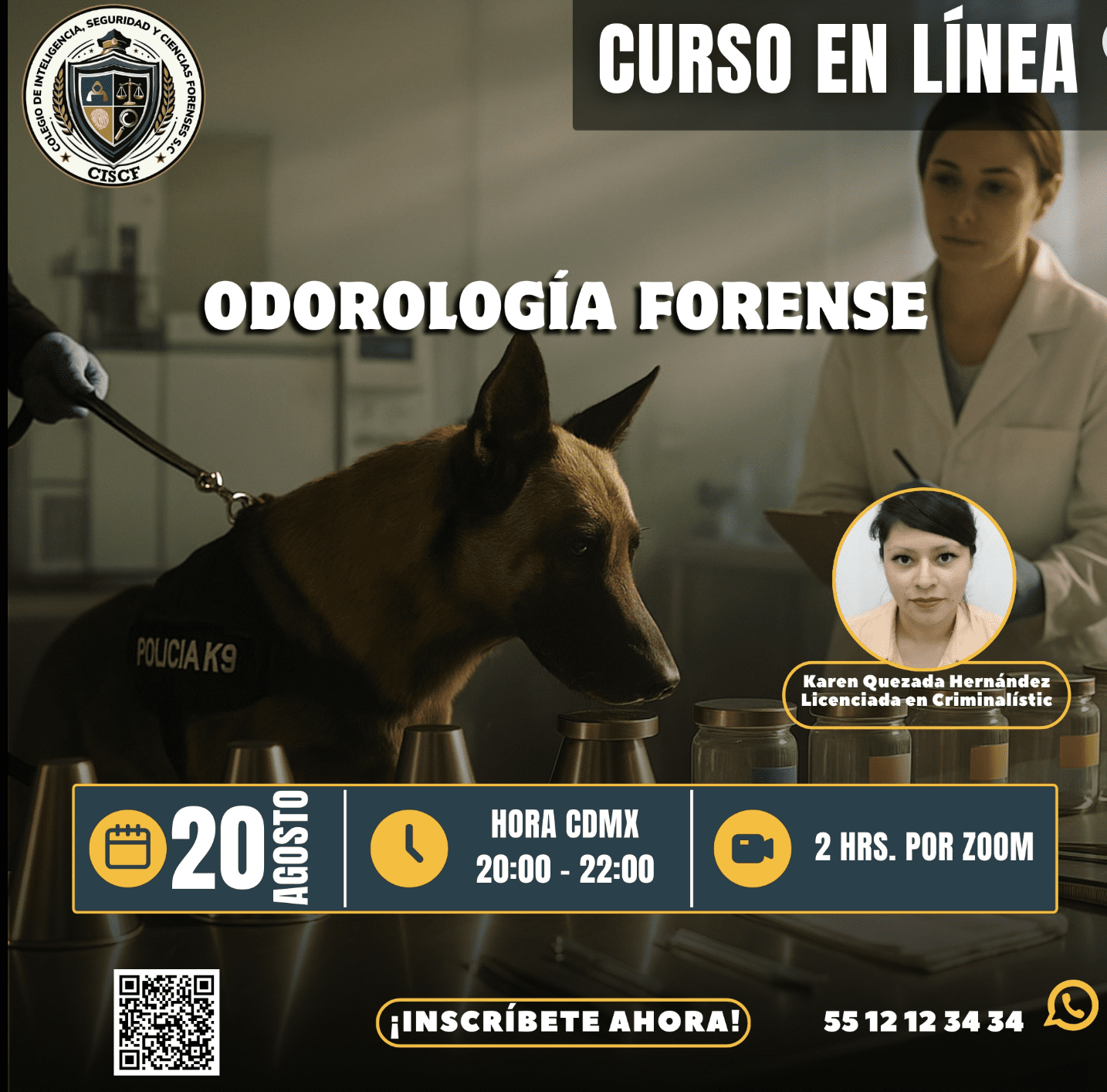 La odorología forense es la ciencia que estudia y analiza los olores humanos, animales u objetos para ser utilizados como indicios en investigaciones criminales. Este curso te brindará los fundamentos científicos, técnicos y legales para comprender la importancia del olor como evidencia.