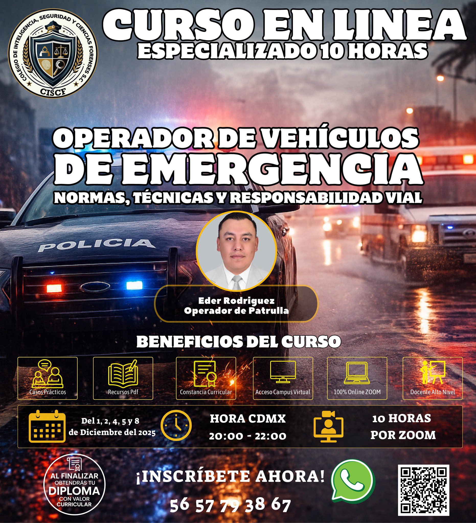 Este curso especializado de 10 horas (5 sesiones de 2 horas) brinda las herramientas esenciales para operar vehículos de emergencia de forma segura, eficiente y responsable, cumpliendo con las normas técnicas y legales aplicables. Se abordarán aspectos preventivos, éticos y operativos indispensables para el personal que conduce ambulancias, patrullas, camiones de bomberos o unidades de rescate.