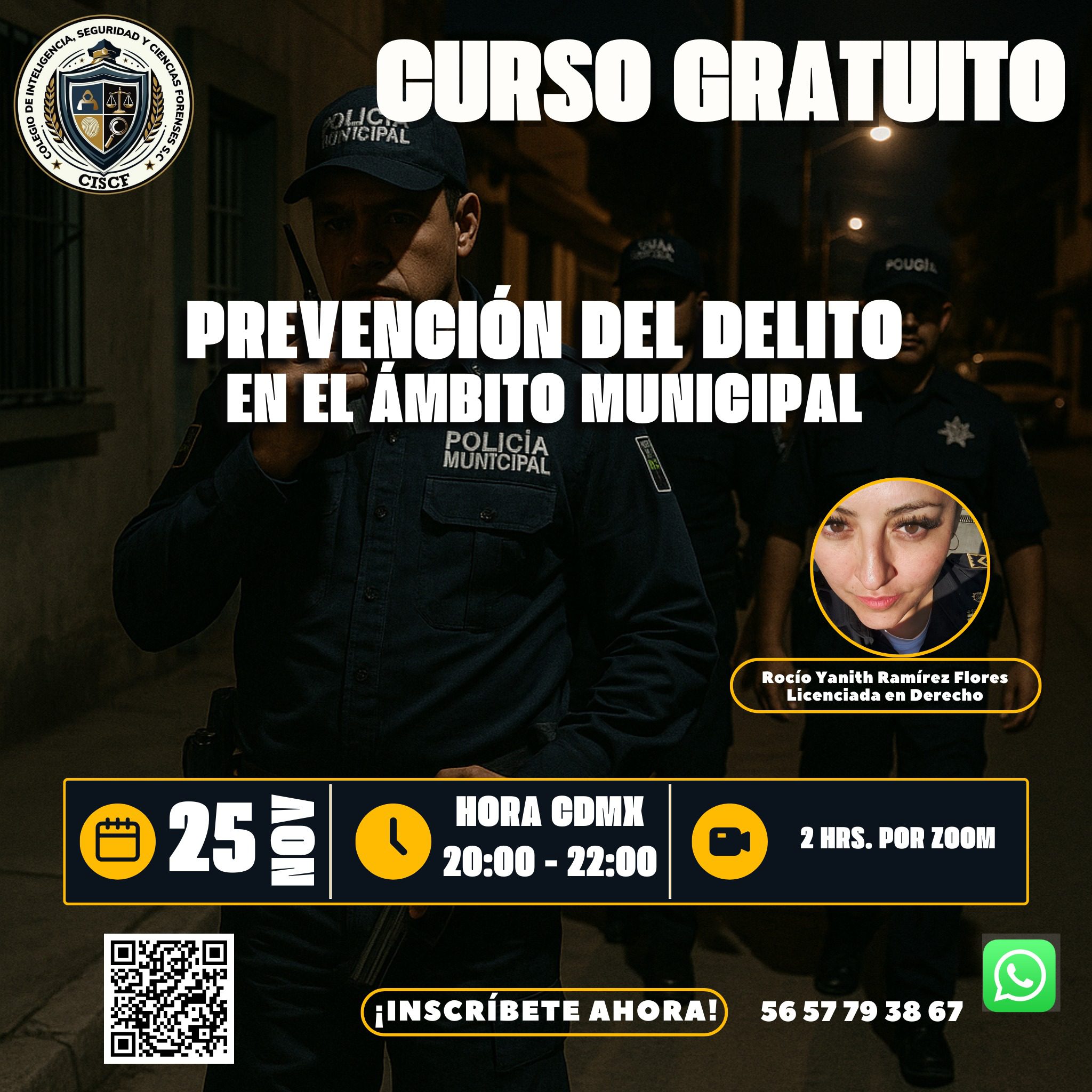El ámbito municipal es la primera línea de defensa en la prevención del delito. Este curso gratuito te enseña las estrategias, herramientas y enfoques que permiten a policías, autoridades locales y ciudadanos identificar factores de riesgo, reducir oportunidades delictivas y fortalecer la seguridad comunitaria desde un enfoque estratégico, jurídico y operativo.