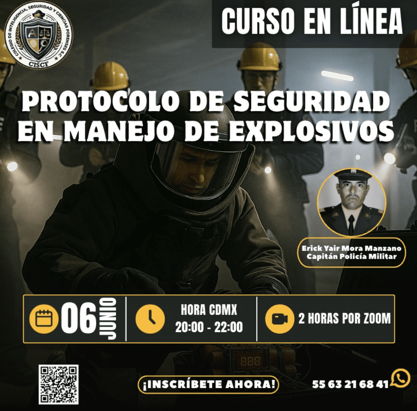 El manejo de explosivos exige máxima precaución, preparación y protocolos bien establecidos. Este curso brinda los conocimientos clave sobre los tipos de explosivos, su almacenamiento, transporte, activación y desactivación segura, así como las estrategias de prevención y respuesta ante amenazas explosivas.