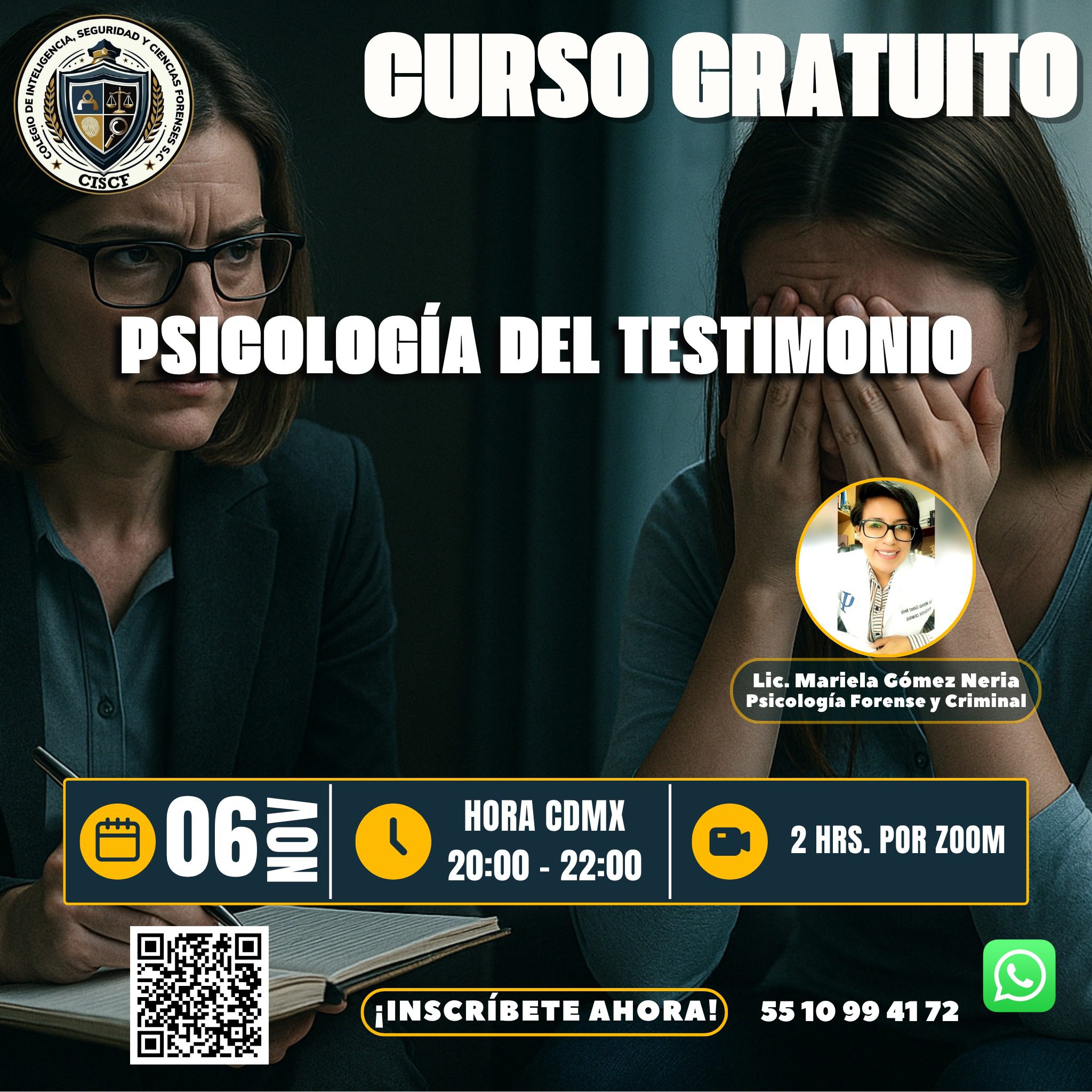 La psicología del testimonio analiza la validez y confiabilidad de las declaraciones emitidas por testigos y víctimas. Este curso gratuito ofrece herramientas científicas y metodológicas para comprender cómo influyen la memoria, las emociones y los sesgos cognitivos en la declaración de los hechos dentro del proceso judicial.