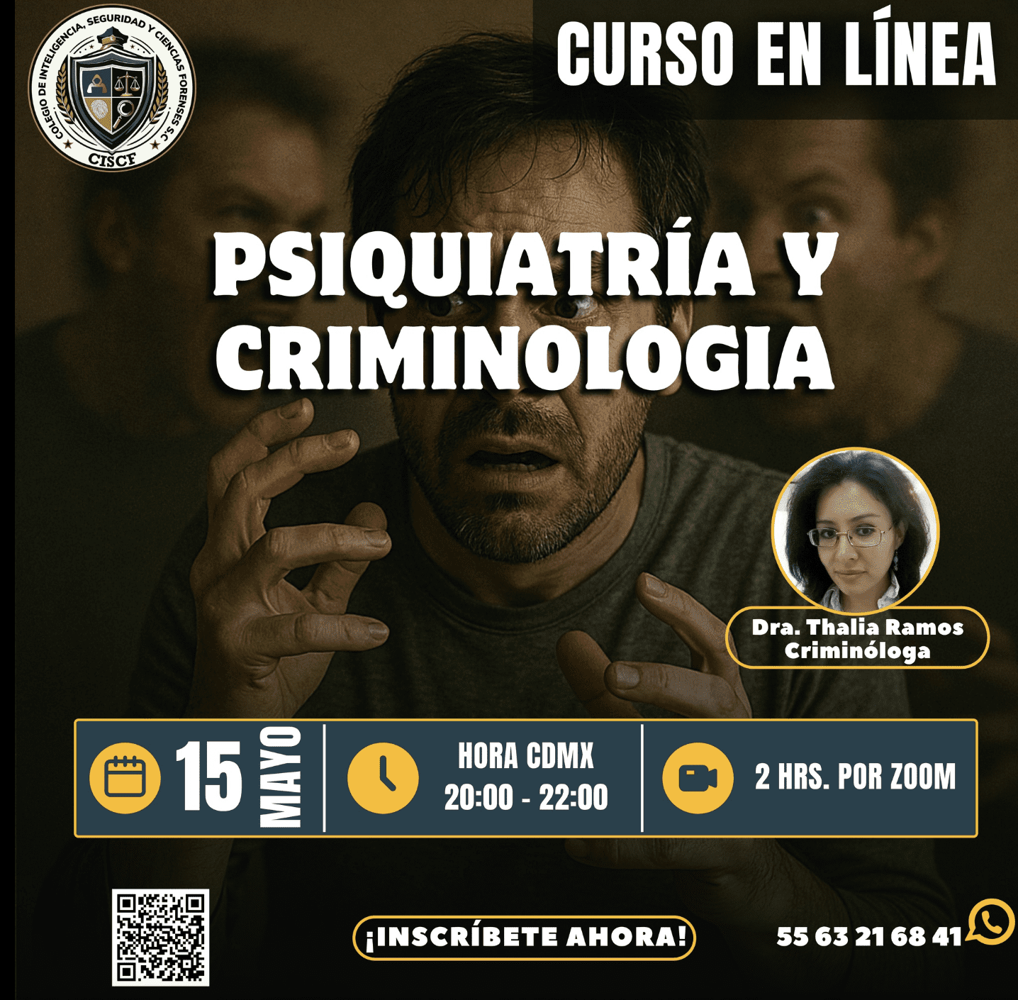 Este curso analiza la relación entre los trastornos mentales y la conducta delictiva desde una perspectiva clínica y criminológica. Se abordarán los principales diagnósticos psiquiátricos implicados en la criminalidad, así como el papel de la psiquiatría forense en el sistema penal.