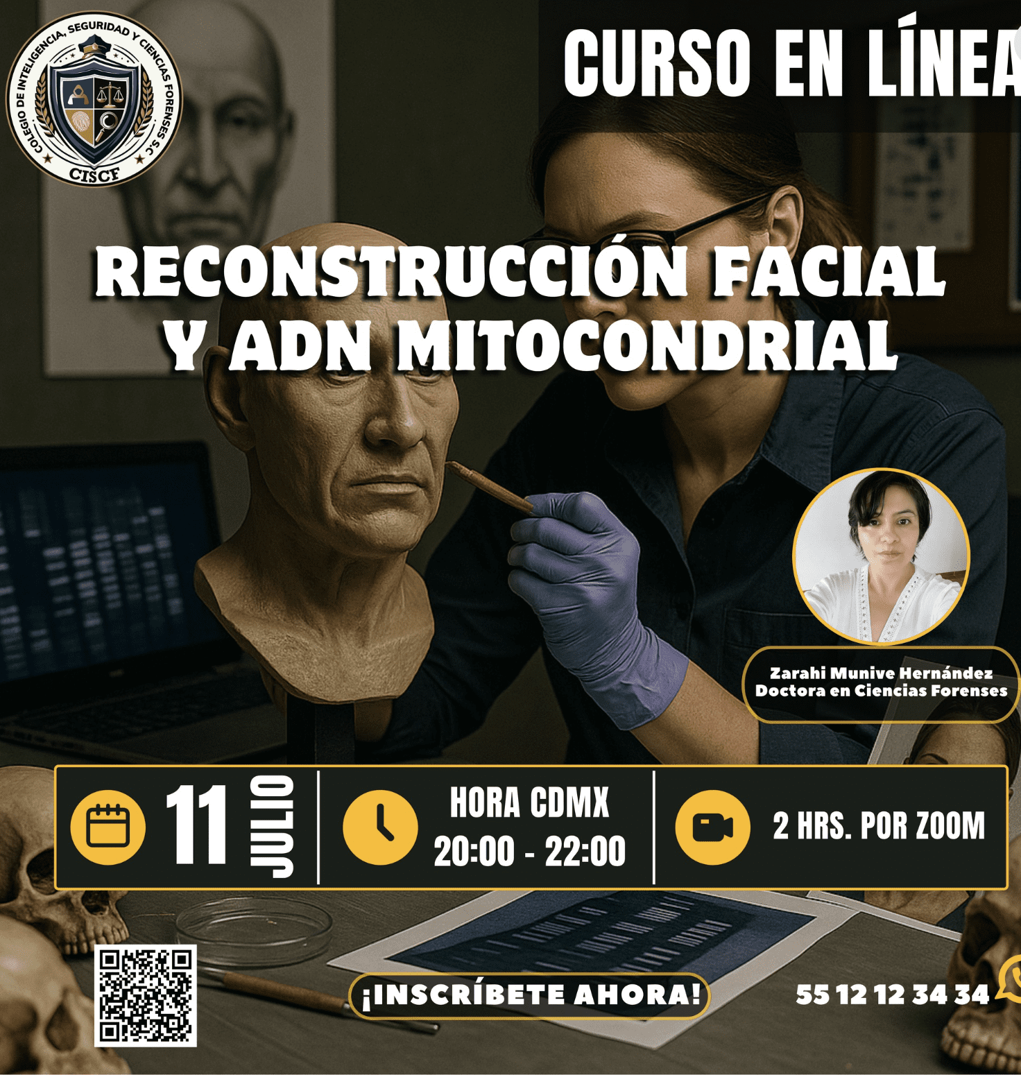 Conoce las bases técnicas y científicas de la reconstrucción facial forense aplicada a la identificación humana, así como el uso del ADN mitocondrial en restos óseos y cadáveres en descomposición. Este curso aborda casos reales, análisis genético, biometría forense y modelado facial.