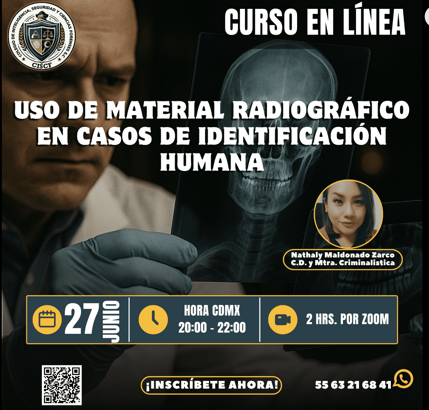 La comparación de estudios radiográficos es una de las herramientas más precisas para identificar restos humanos. Este curso explora el valor forense de las imágenes dentales y óseas en procesos de identificación, incluso en cadáveres calcinados, esqueletizados o en estado de descomposición.